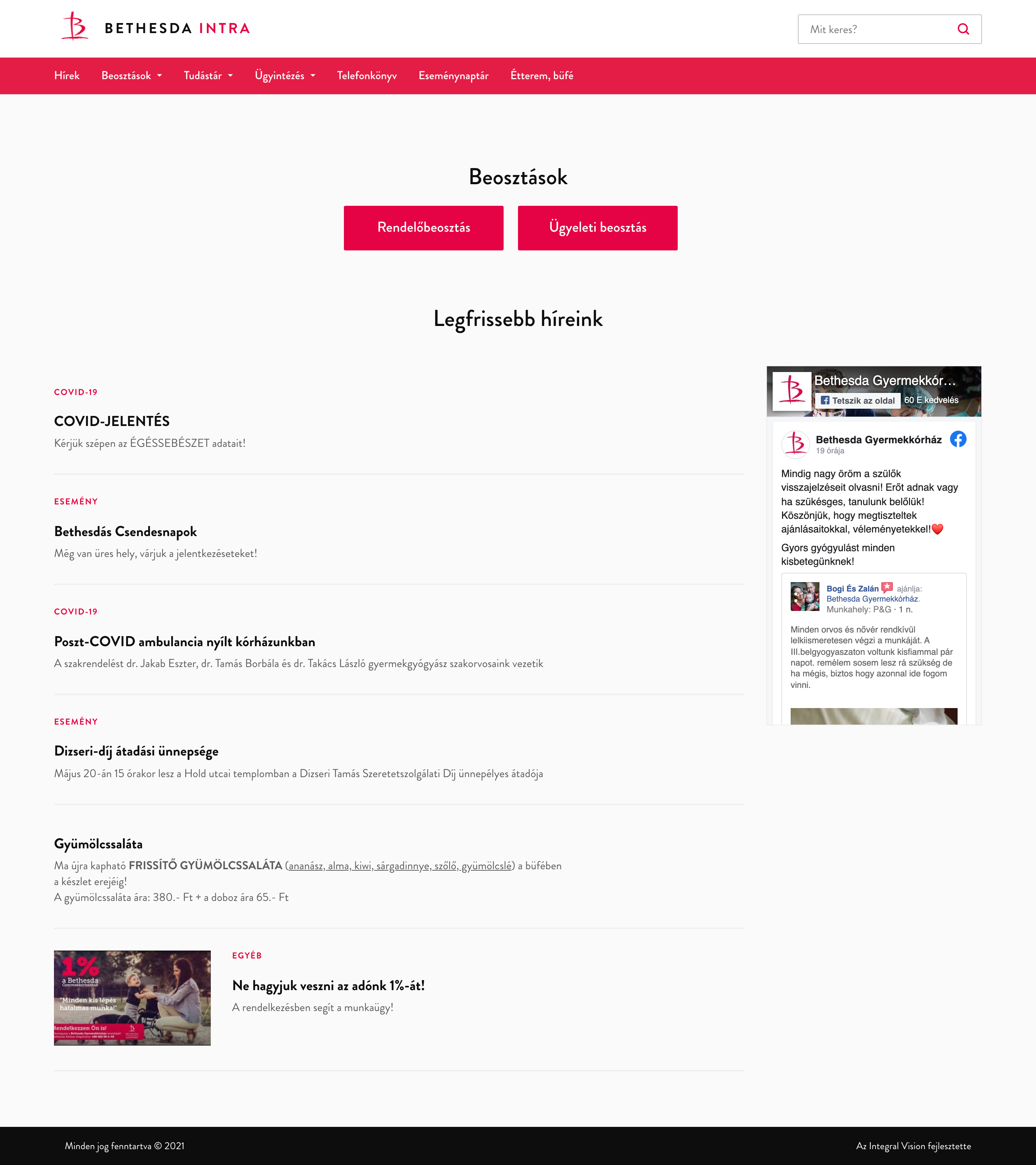 A Bethesda Gyermekkórház számára készült belső felhasználású weboldal célja az volt, hogy az igények teljeskörű lefedésével ugyanakkor költséghatékonyan biztosítsunk egy felületet, ahol az intézmény minden tagja értesülhet a kórház működését érintő naprakész információkról.